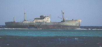 The Loullia ship wreck (ran aground 29th September 1981) on Gordon reef, 1998